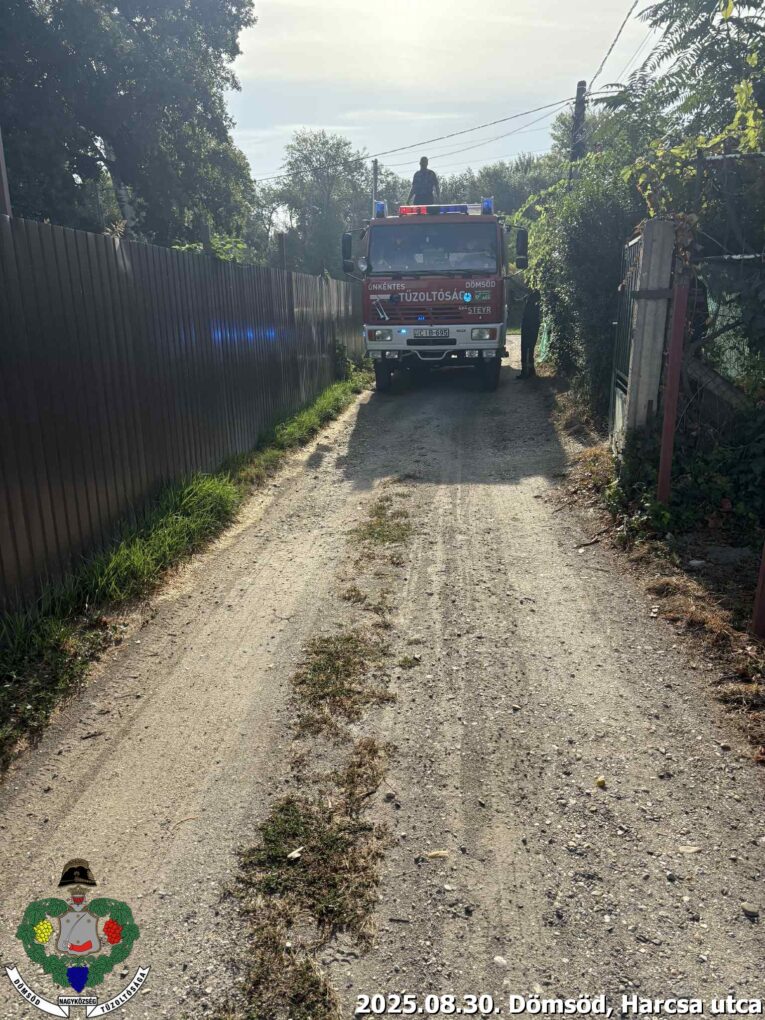 2025. augusztus 30-án 08:08-kor kaptuk a riasztást: Dömsöd, Harcsa utcában elemi csapás miatt, műszaki mentésben kértek segítséget. A bejelentés alapján: „Zsákutca végén egy magánszemély udvaráról kidőlt egy nagy fa, két szomszéd kerítésére esett, a nagysága miatt autóval nem tudnak közlekedni mert rálóg az útra. Nem tudják az elérhetőségét a kidőlt fa tulajdonosához.”