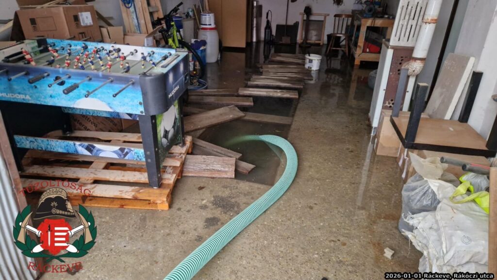 2026. január 1-én 09:09-kor kaptuk a riasztást: Ráckeve, Rákóczi utcában vízeltávolításban kértek segítséget.